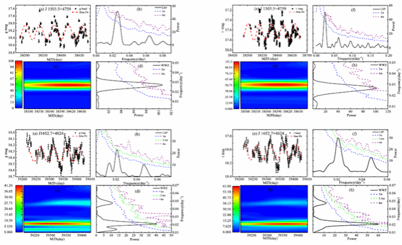 耀变体喷流近乎正对观测者,表现出强烈的非热辐射和快速光变。其中可能的准周期振荡(QPOs)与喷流不稳定性、双黑洞系统或吸积过程等潜在相关,对理解喷流物理及探测超大质量双黑洞具有重要意义。本研究基于 Zwicky Transient Facilit...