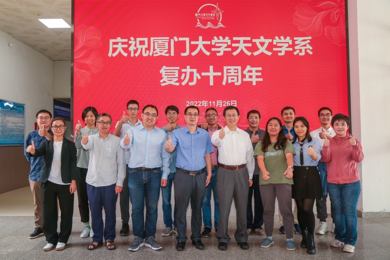 The new astronomy department was re-established in 2012. Currently, we have 22 employees, including 17 full-time faculties, 1 engineer, 1 faculty with a joint-appointment, and 3 staffs. Our research interests cover the theoretical and observational fields on high energy astrophysics, galaxy, star and exoplanet, cosmology, and astropaticle physics. Our faculty members include 2 winners of the National Science Fund for Distinguished Young Scholars, 4 winners of the National Science Fund for Excellent Young Scholars, 2 national high-level talents, and 4 national high-level young talents.
