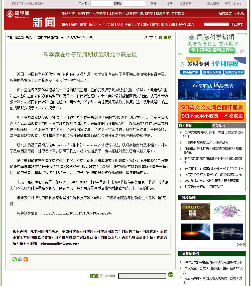 科学网报道:https://news.sciencenet.cn/htmlnews/2022/1/472326.shtm 论文链接:https://iopscience.iop.org/article/10.3847/1538-4357/ac2e94 近物所报道:http://www.imp.cas.cn/kyjz2017/202201/t20220107_6336884.html 天文学系报道:https://astro.xmu.edu.cn/info/1...