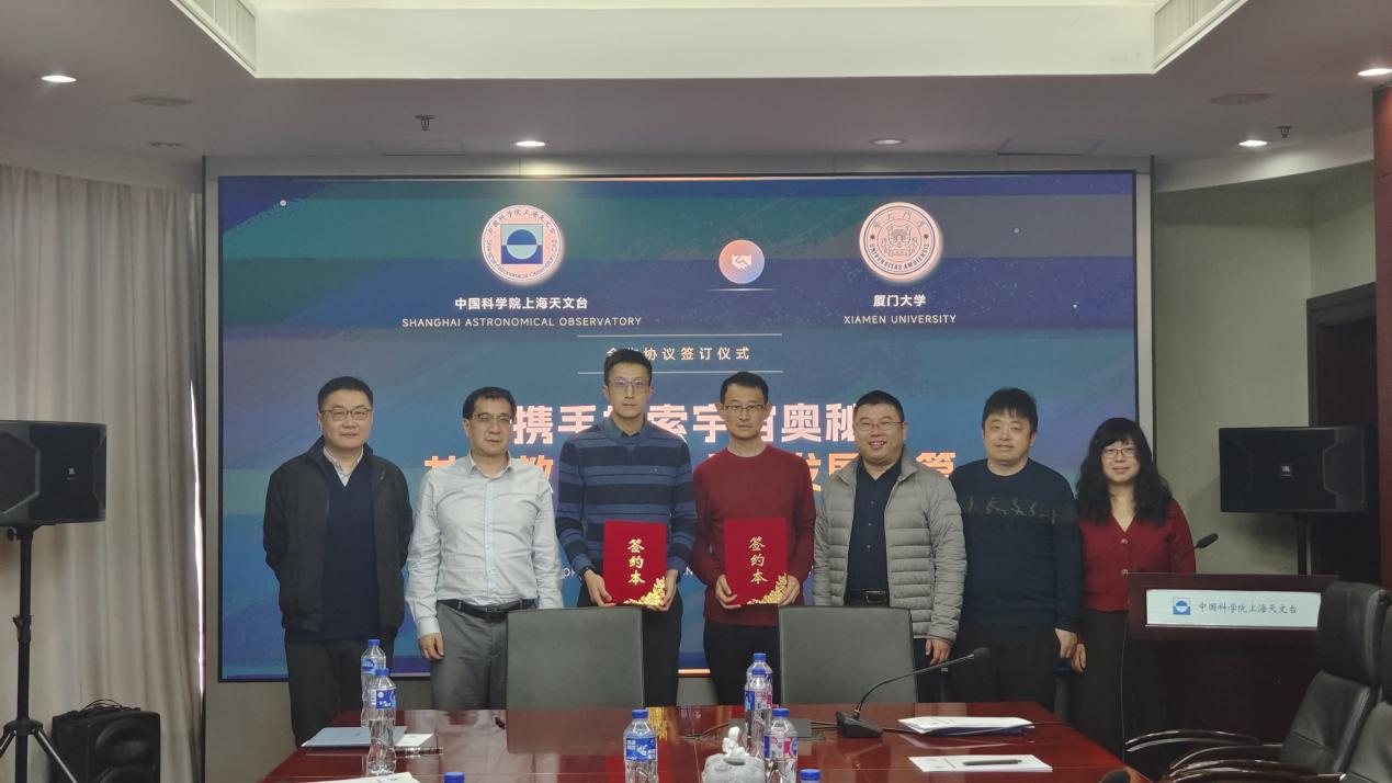 2026年2月4日上午,厦门大学与中国科学院上海天文台合作协议续签仪式在上海天文台顺利举行。上海天文台台长孔大力、天体物理研究室主任路如森、副主任郭福来、研究员刘铁、人力资源部主任兼人事处处长商琳琳、研究室处处长马金等,厦...