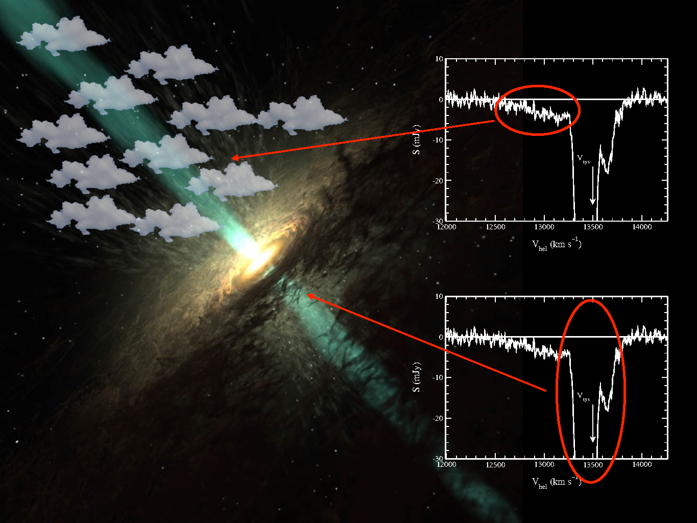 当背景射电源与前景中性氢(HI)气体在视线方向上对齐时,我们可能在射电波段看到HI 21 cm吸收线。HI吸收线对于研究活动星系核(AGN)与周围星际介质(ISM)的相互作用十分重要,其可以示踪星系不同尺度的气体结构,从中心黑洞附近的pc尺度延伸至数十kpc的星系尺度。观测研究表明,射电AGN中探测到的HI吸收线可以追踪旋转气体盘结构、供给超大质量黑洞生长的内流气体、AGN反馈吹出的外流气体,以及揭示jet-ISM相互作用的气体云。