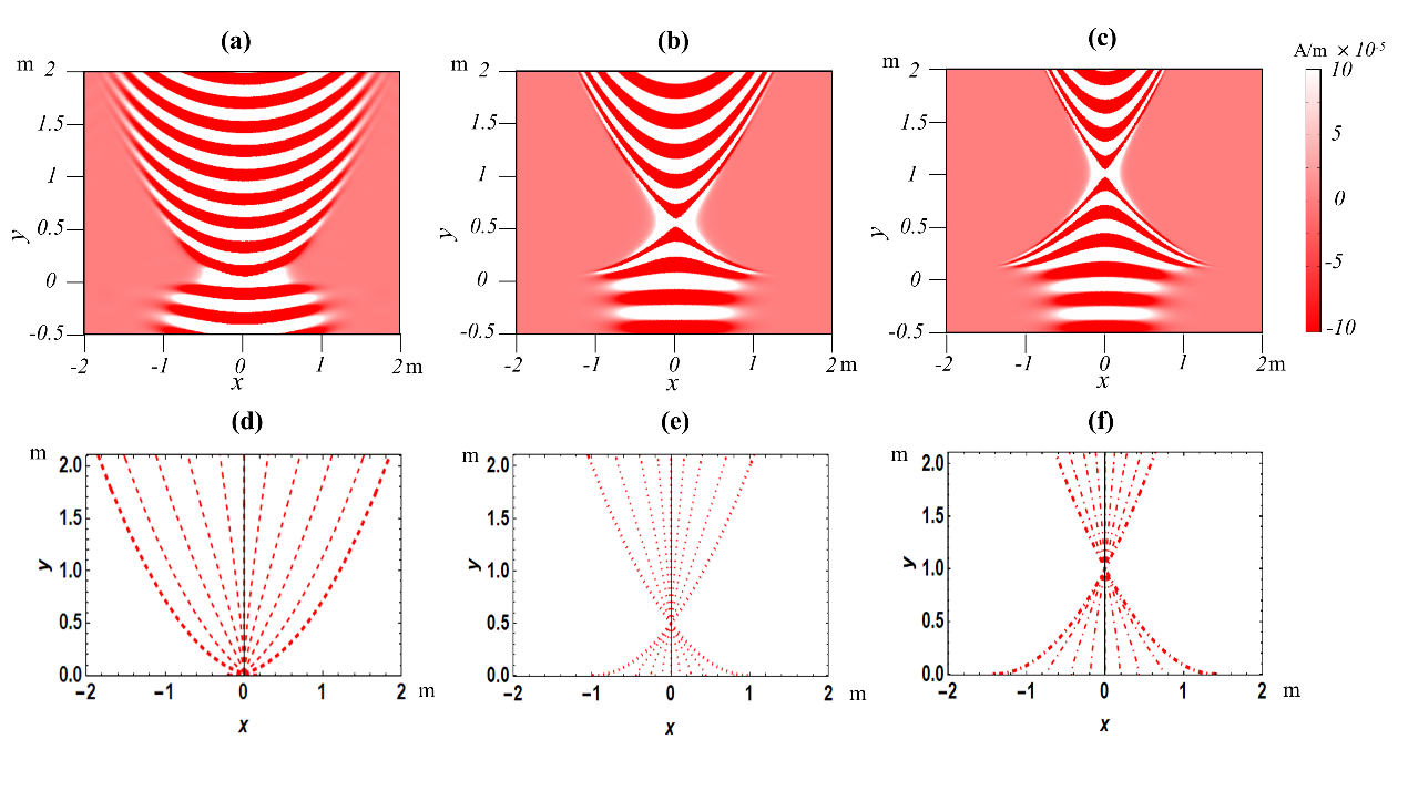 近年来,双曲超材料由于其沿不同主轴的介电常数张量分量具有不同的符号这一独特性质而受到了广泛的研究。这种材料特性导致了双曲色散,在原理上可以支持无限大的传播动量,从而产生了许多应用,包括负折射、增强的自发发射和超透镜。我们在变换光学的基础上,通过一维空间轴替代一维时间来宇宙学度规相关的双曲超材料,模拟了开放、平坦和封闭三种膨胀宇宙模型下粒子视界的变化(如图所示)。研究结果表明,波动光学与几何光学非常吻合,宇宙膨胀过程中粒子视界的变化也能很好的在双曲超材料中体现,揭示了双曲超材料在模拟时空中的优越性质,同时表明空间轴在一定程度上确实能够用来替代时间轴。