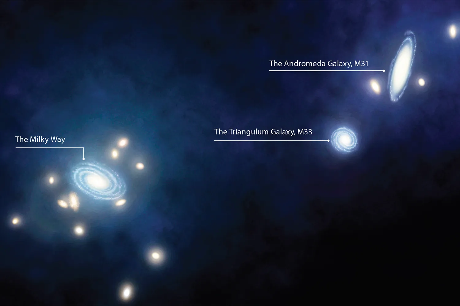 图 1 :本星系群的示意图。就像本星系群所展现的一样,贫星系群往往只包含少数几个明亮的大星系。图片来源:维基百科