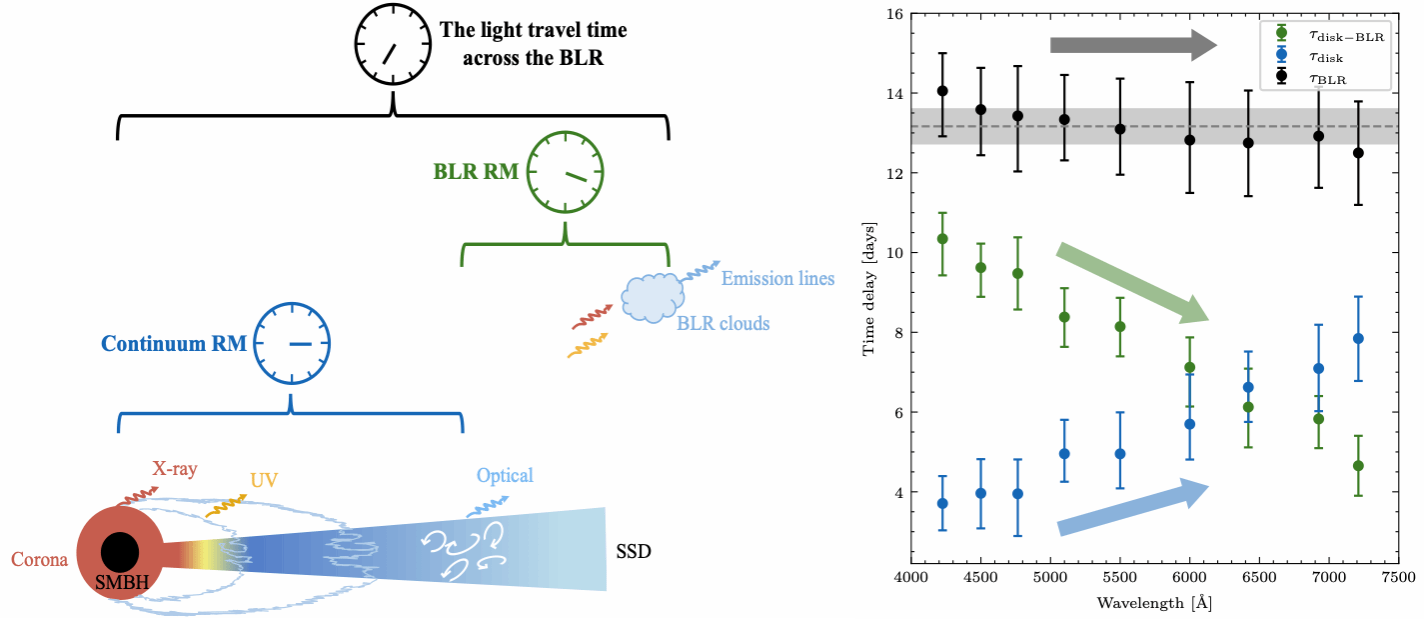 进行前述基于宽线区结构测量星系距离时,反响映射测得的宽线区线性尺度是关键输入。因此,吸积盘连续谱时间延迟的不确定性及其随光度状态剧烈波动的可能性,为这种基于宽线区结构测量星系距离的方法带来了潜在的系统性误差。