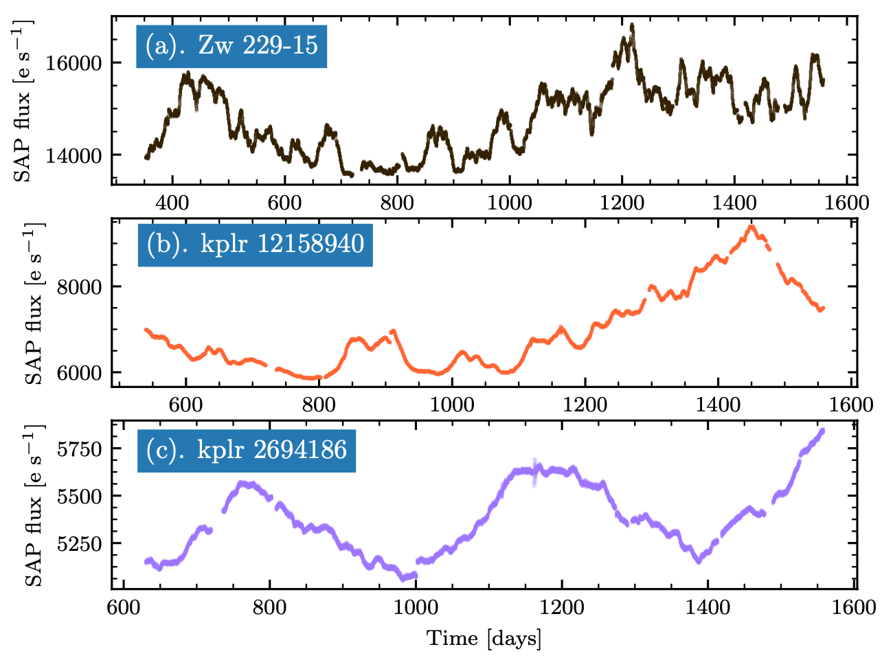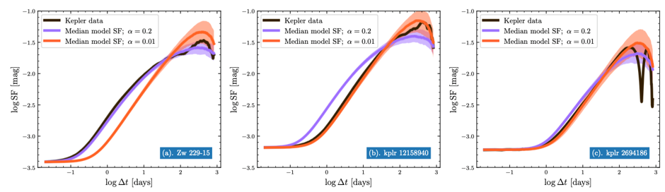 图1. 三个活动星系核在可见光波段的高质量光变曲线(由Kepler望远镜获得),来自Sun et al. (2020).