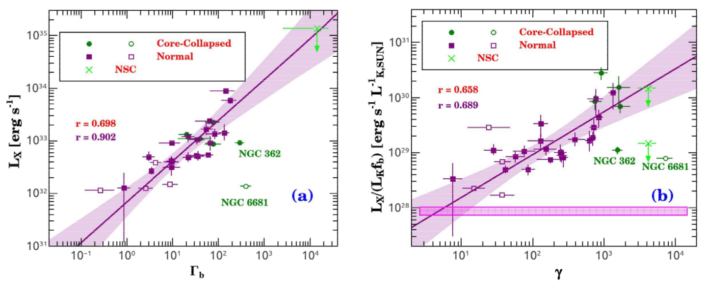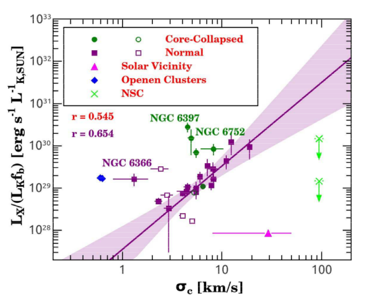 作为银河系中古老的自引力束缚天体系统,球状星团在演化中需要有稳定的内部产能机制,才能避免系统过早地发生引力热坍缩。Hills-Heggie定理预言:通过双星-单星/双星-双星碰撞过程,球状星团中的软双星(轨道束缚能|Eb|小于星团中恒星的平均动能Ek的双星)将会被瓦解;而硬双星的(|Eb|>Ek)轨道间距将收缩,把双星轨道束缚能转化为恒星动能,从而为球状星团演化提供能量注入,延缓星团的坍缩过程。此外,通过双星-单星/双星-双星的碰撞过程,星团中的主序硬双星还能与致密星发生交换碰撞,并有效地形成小质量X射线双星(LMXB),毫秒脉冲星(MSP),激变变星(CV),或者触发双星的相互作用形成日冕活动双星(AB)。最终,这些硬双星演化产物都将产生大量的X射线辐射。在本文中,利用Chandra望远镜的观测数据,我们测量了数十个银河系球状星团的X射线辐射,并以此来示踪星团内部的密近双星丰度。通过对比球状星团X射线辐射与星团内恒星碰撞因子的关系,以及密近双星、普通主序双星丰度比与星团内恒星速度弥散的关系,我们检验了Hills-Heggie定理的合理性。