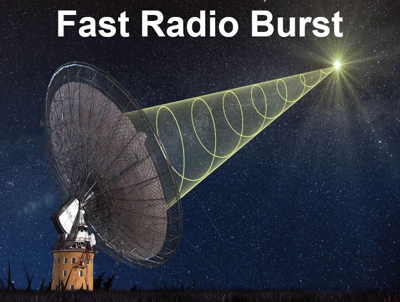 An artist's depiction of CSIRO's Parkes radio telescope receiving the polarised signal from the new 'fast radio burst'. (Image: csiro.au)