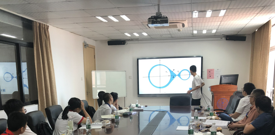 左图:薛老师给英才计划学员介绍候选课题;右图:汤杰同学在英才计划中期考核时介绍课题研究结果