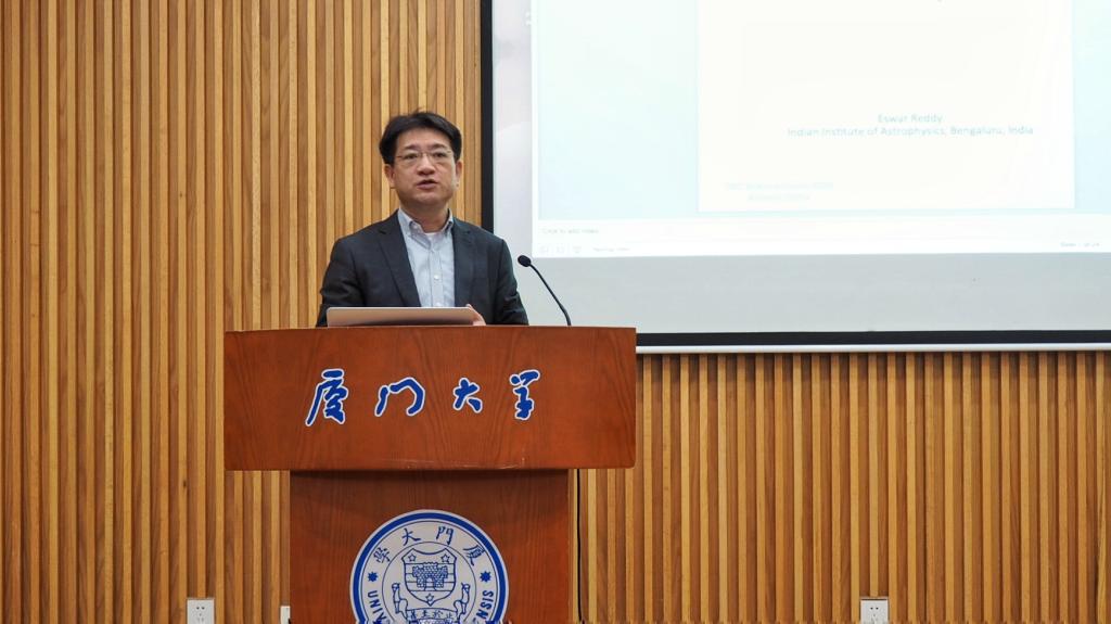 厦门大学副校长江云宝教授首先致辞,向参会专家介绍了厦门大学的历史与现状,回顾了厦门大学天文学科的发展历程。中国科学院国家天文台副台长薛随建研究员介绍了我国参加TMT的情况。