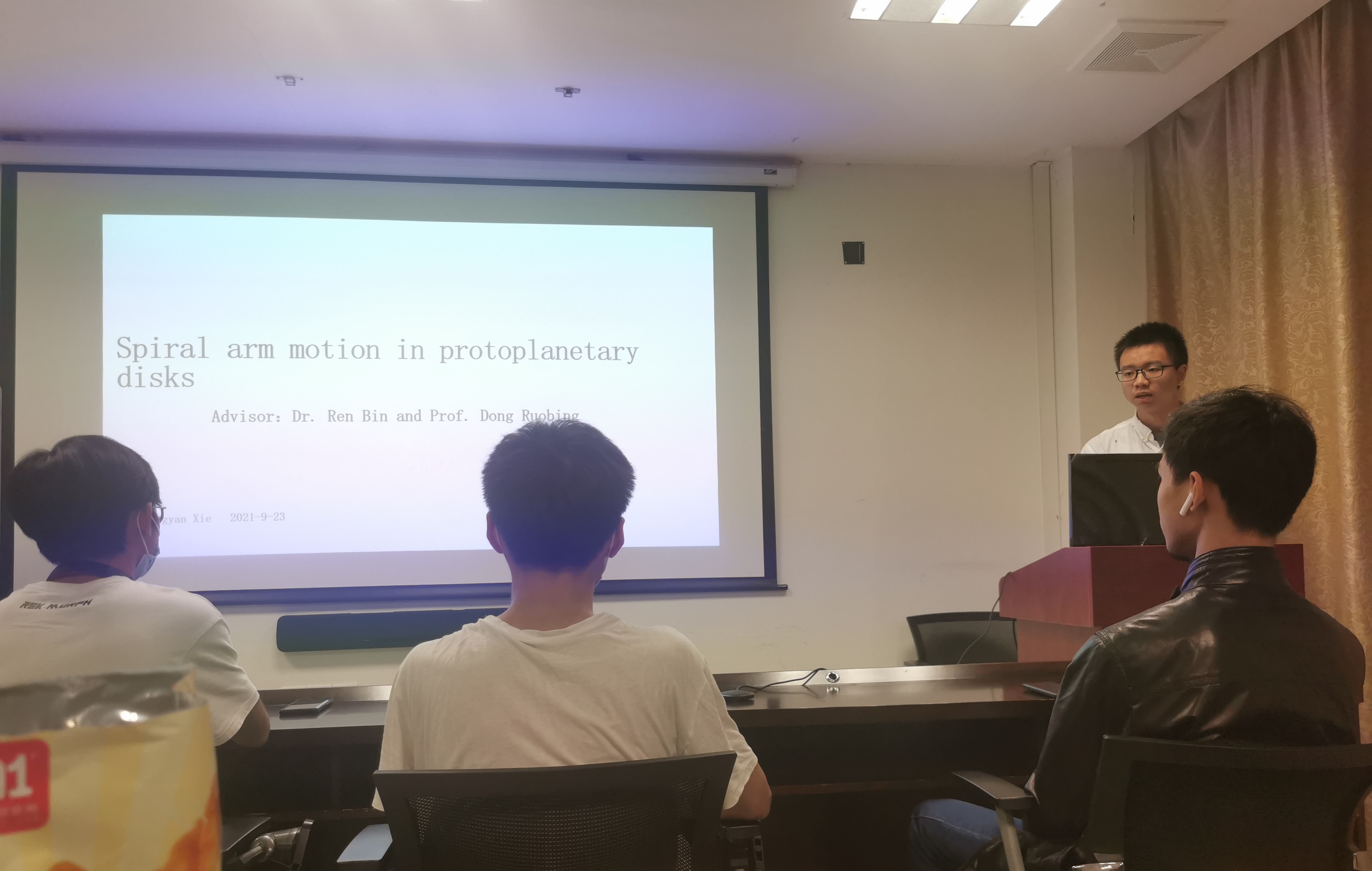 2021年10月24日,厦门大学天文学科拔尖计划班召开了十月例行本科生学术研讨活动。本次活动由18级本科生瞿惠敏同学主持,邀请了18级本科生谢承炎同学介绍他在原行星盘方面的研究工作,分享本科生做科研项目的经历。