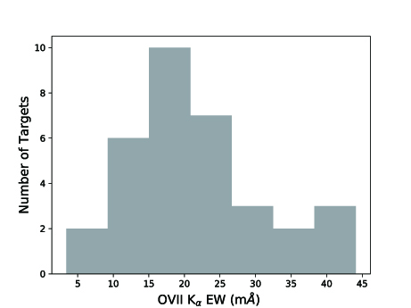 Abstract: The detection of highly ionized metal absorption lines in the X-ray spectra of the Galactic X-ray binaries (XRBs) implies the distribution of hot gas along the sightline toward the background sources. However, the origin of this hot gas is still unclear: it can arise in the hot interstellar medium (ISM), or is intrinsic to the XRBs. In this paper, we present an XMM-Newton survey of the O VII absorption lines in the spectra of Galactic XRBs. A total of 33 XRBs were selected, with 29 low-mass XRBs and 4 high-mass XRBs. At a more than 3σ threshold, O VII absorption line was detected in 16 targets, among which 4 were newly discovered in this work. The average line equivalent width is centered around ∼20 mÅ. Additionally, we do not find strong correlations between the O VII EWs and the Galactic neutral absorption N H, the Galactic coordinates, or the distance of background targets. Such non-correlation may suggest contamination of the circumstellar material, or a lack of constraints on the line Doppler-b parameter. We also find that regardless of the direction of the XRBs, the O VII absorption lines are always detected when the flux of the background XRBs reaches a certain level, suggesting a uniform distribution of this hot gas. We estimate a ratio of 0.004–0.4 between the hot and neutral phases of the ISM. This is the second paper in the series following Fang et al. (2015), in which we focused on the local O VII absorption lines detected in the background AGN spectra. Detailed modeling of the hot ISM distribution will be investigated in a future paper.