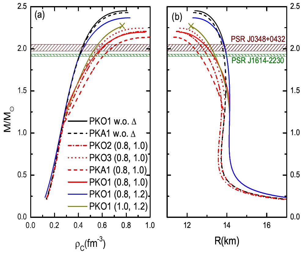 Recently, a team of astronomers from Xiamen University, led by associate Professor Ang Li, has extended the density-dependent relativistic Hartree-Fock (DDRHF) theory to include Delta-isobars for the study of dense nuclear matter and neutron stars. To this end, they solve the Rarita-Schwinger equation for spin-3/2 particle. Both the direct and exchange terms of the Delta-isobars' self-energies are evaluated in details. In comparison with the relativistic mean field theory (Hartree approximation), a weaker parameter dependence is found for DDRHF. An early appearance of Delta-isobars is recognized at around 0.28fm^{-3}, comparable with that of hyperons. Also, they find that the Delta-isobars' softening of the equation of state is mainly due to the reduced Fock contributions from the coupling of the isoscalar mesons, while the pion contributions are negligibly small. They finally conclude that with typical parameter sets, neutron stars with Delta-isobars in their interiors could be as heavy as the two massive pulsars whose masses are precisely measured, with slightly smaller radii than normal neutron stars. This work has been accepted for publication on Physical Review C.
